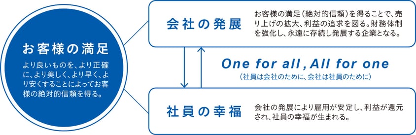 お客様の満足(絶対的信頼)の中に、会社の発展と社員の幸福は存在する