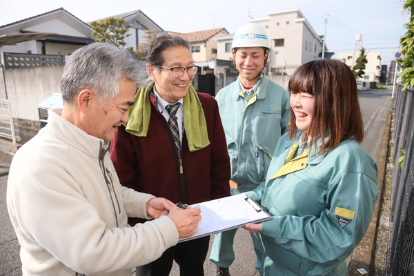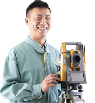 私の仕事は国土調査(地籍調査・地籍測量)です。簡単に言うと「宅地や山間部の地面を調査し、測量する仕事」です。土地には所有者、地番、地目、筆界(※)がありますが、それらの内容が古くてあいまいだったり、災害等でわからなくなっていたりすることがあります。そうした土地を改めて調査し、測量を行っています。専門用語や専門の機械を使うため難しく感じますが、私も入社後にすべて覚えました。未経験で知識がなくても入社後に習得できる専門技術職です。