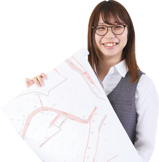 私は測量後のデータ整理、CADを使った図面作成、簿冊作成などを担当しています。専門知識がなくCADも未経験の状態で入社したので、最初は覚える単語やルールが多くて大変でした。